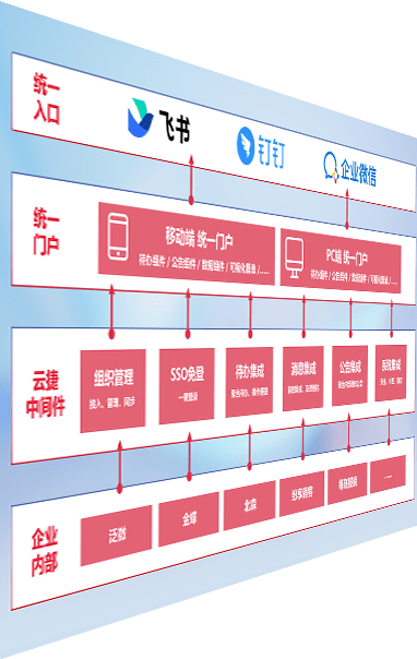 对协作平台提供支持服务,,支持企业应用与协作平台对接,,包含组织同步、、消息集成、、、、待办集成等。。支持目前主流的协作平台:钉钉、、、企微和飞书。。。